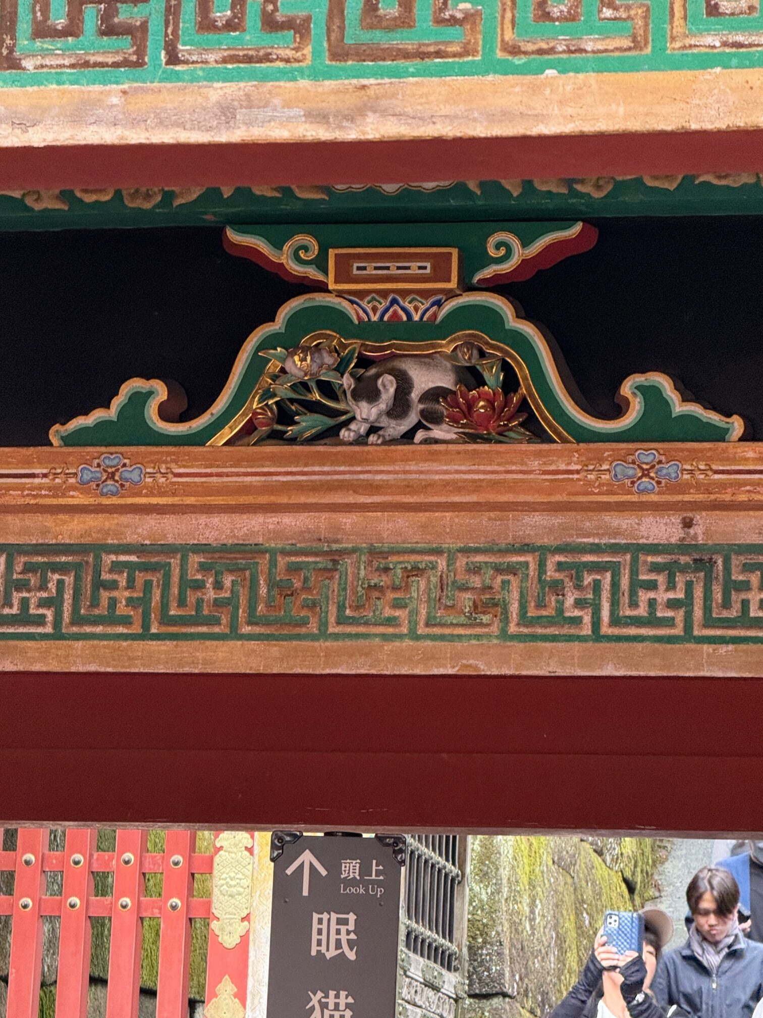 東回廊にある奥社へ続く潜門の梁の上に彫られている「眠り猫」は平和の象徴。
