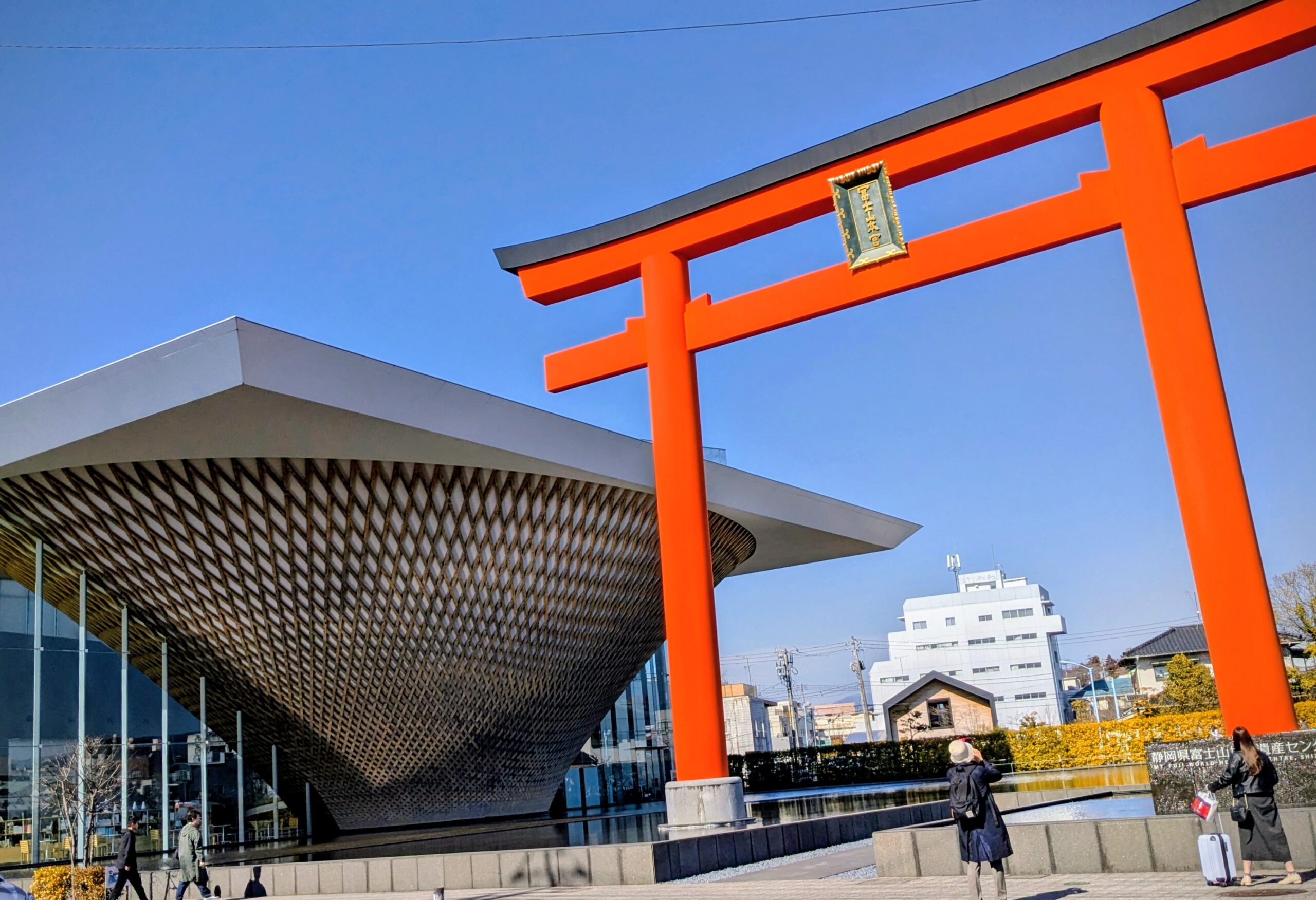 背景にある富士山と清流、水面に移る鳥居と調和のとれた美しい建物でした。