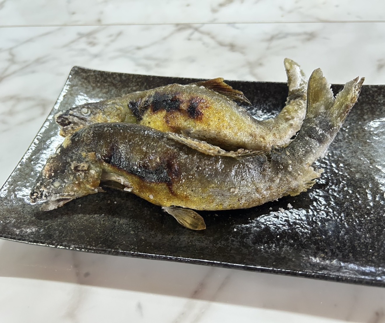 鮎は炭火焼きで外はパリパリ、中はふっくら!