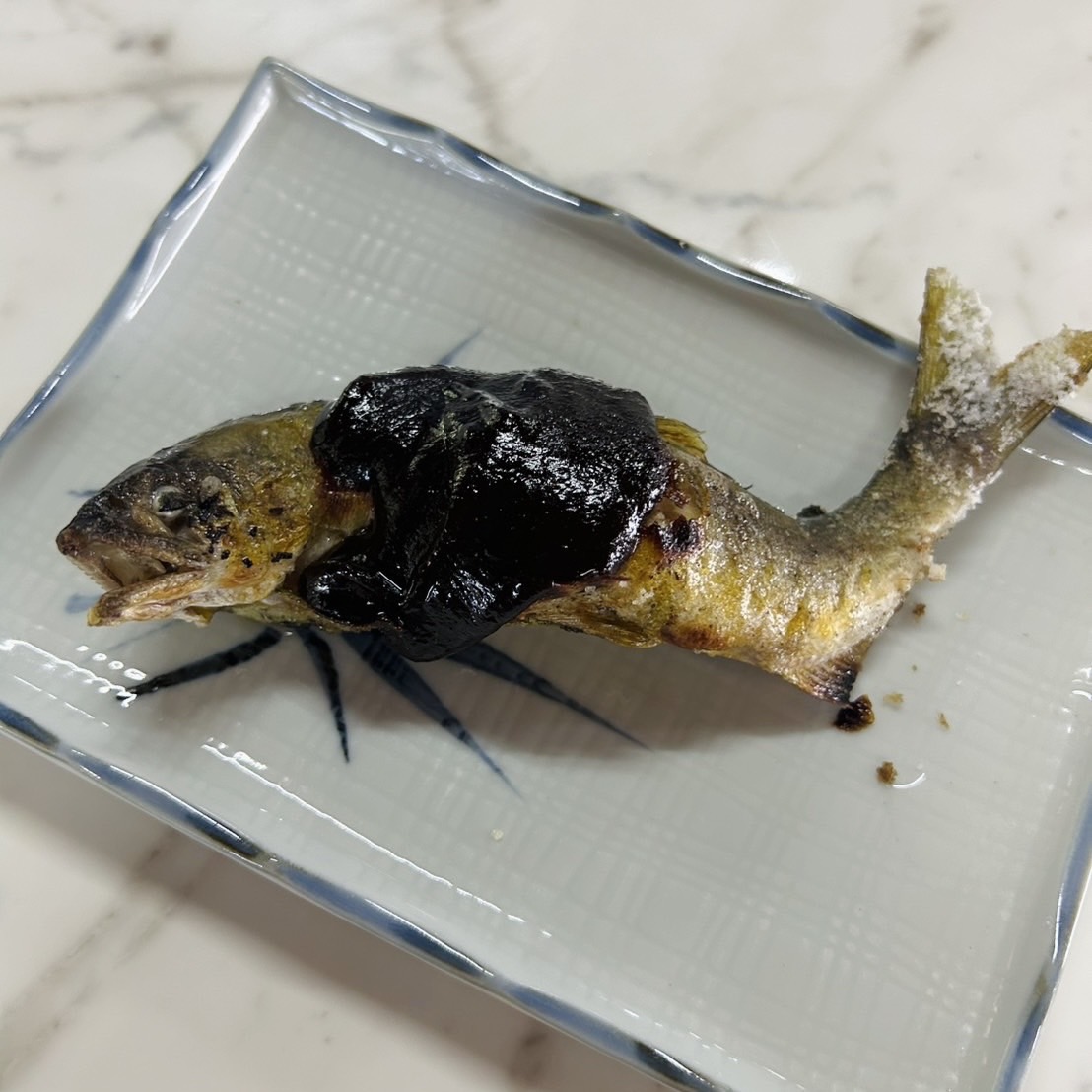捕まえたアユを塩焼きアユと交換してもらい、